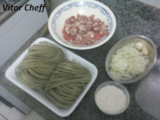 Massa:Escolha uma massa no formato Talharim de espinafre e cozinhe conforme indica no verso da embalagem com um pouco de sal na água e um fio de óleo. no meu caso a massa que escolhi ficou em média 15 minutos pra cozinhar ao dente, mas vai depender de cada massa, aí é só você esperimentar pra ver qual é o melhor ponto de massa pra você. Escorra e jogue um pouco de água gelada pra interromper o cozimento da massa se não ela passa do ponto.